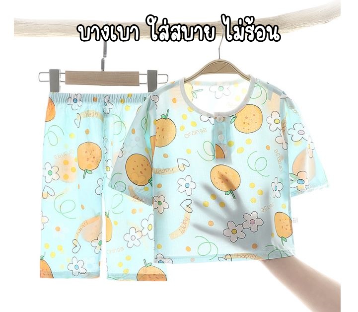 | ไฮไลท์ | ชุดนอนเด็ก ชุดนอนเด็กขายาว แขน3ส่วน ผ้าCotton Silk ผ้าบาง ใส่นอนสบาย ไม่ร้อน [สินค้าพร้อมส่ง] คุณสมบัติสินค้า - ผ้า Cotton Silk (เนื้อผ้าไม่ยืด)  - ผ้าบาง น้ำหนักเบา ระบายอากาศ ใส่ไม่ร้อน - แขน 3 ส่วน ขายาว - ขอบเอวเป็นยางยืด ไม่อึดอัด ขนาดไซส์ ไซส์90   รอบอก 60 cm.  สูง 90 cm.  อายุ 1-2 ปี ไซส์100 รอบอก 64 cm.  สูง 100 cm. อายุ 2-3 ปี ไซส์110 รอบอก 68 cm.  สูง 110 cm   อายุ 3-4 ปี |