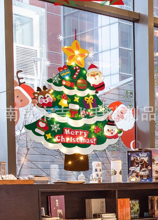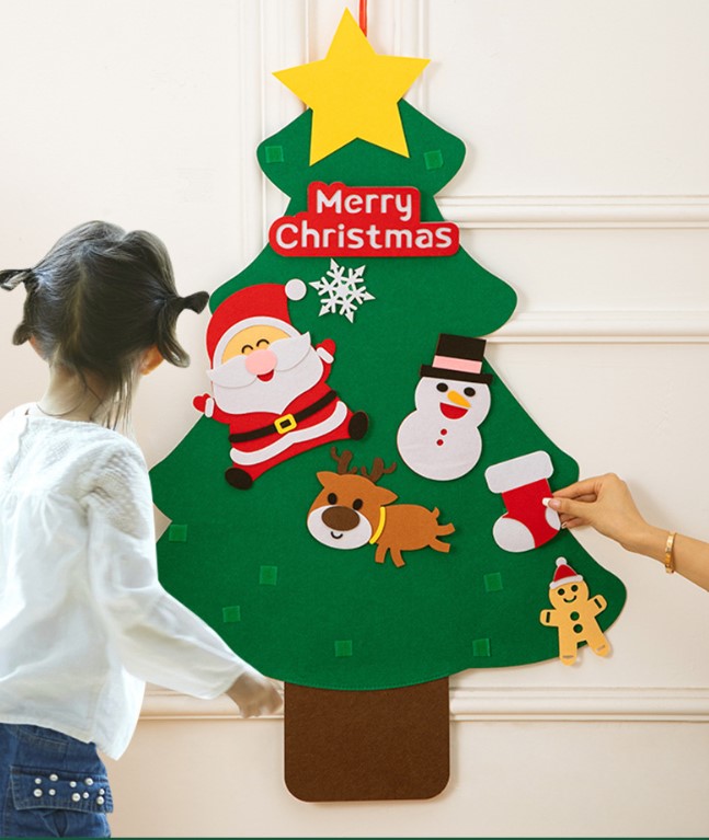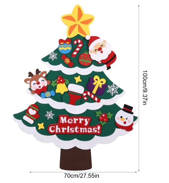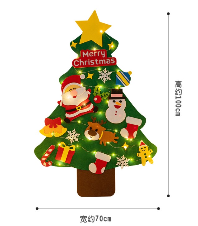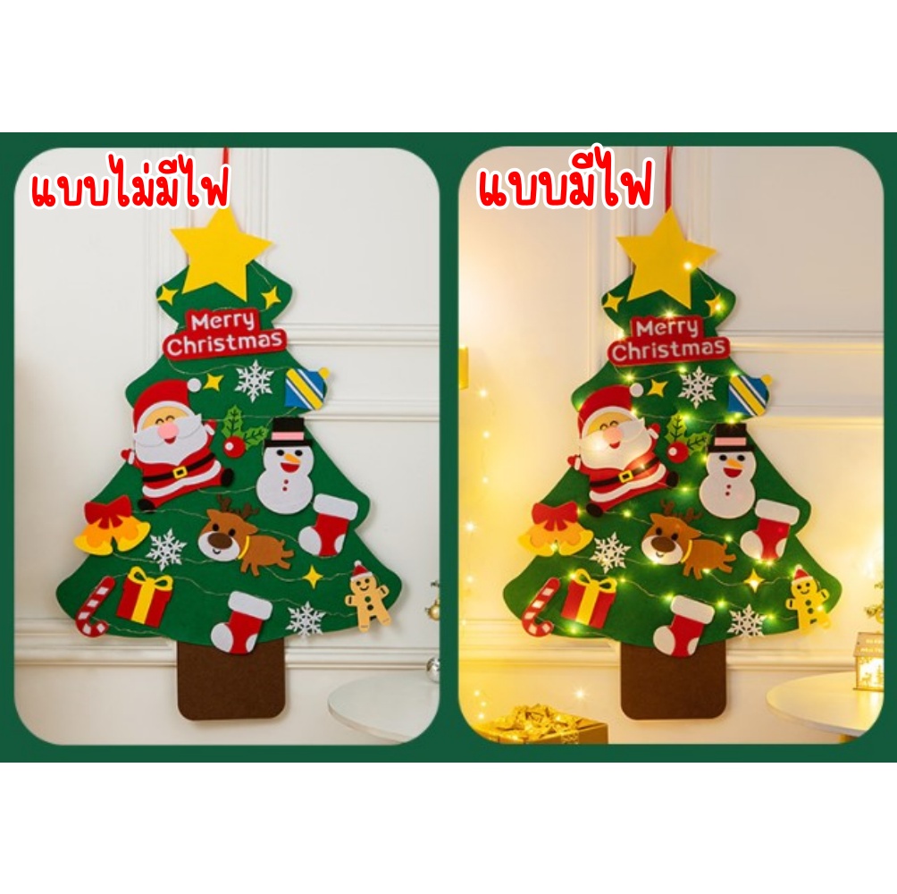 ต้นคริสต์มาสติดผนัง DIY ผ้าสักหลาด แขวนผนัง พร้อมไฟ ส่งจากในไทย