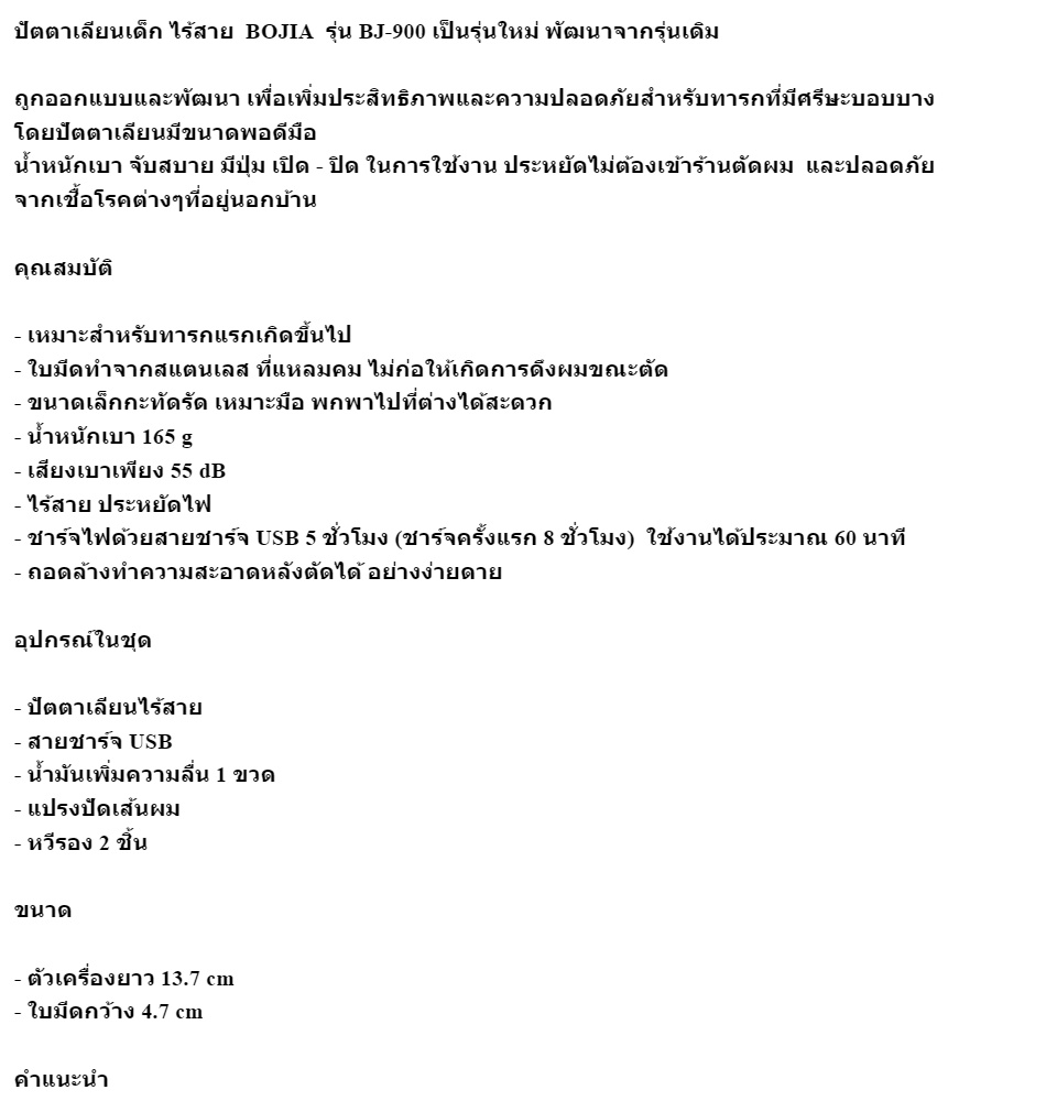 พร้อมส่งจากไทย ปัตตาเลี่ยนเด็ก ปัตตาเลี่ยนไร้สาย ที่ตัดผมเด็กไร้สาย ตัดผมเด็ก ไร้สาย ชาร์จUSB รุ่นใหม่ เสียงเงียบ