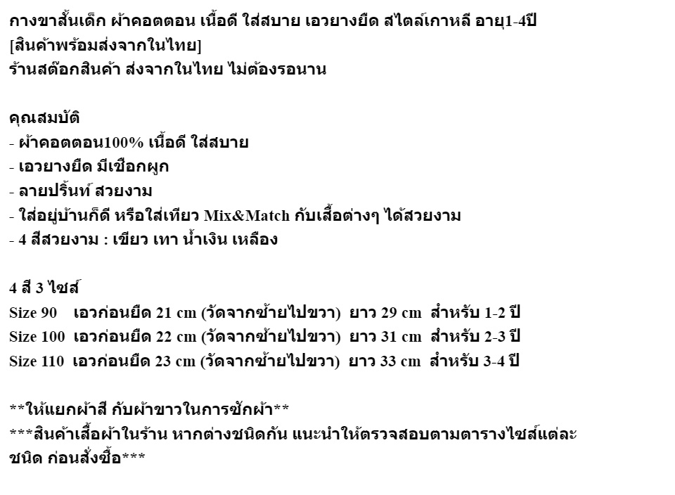 #กางเกงเด็กขาสั้น #คอตตอน100% #กางเกงใส่อยู่บ้าน